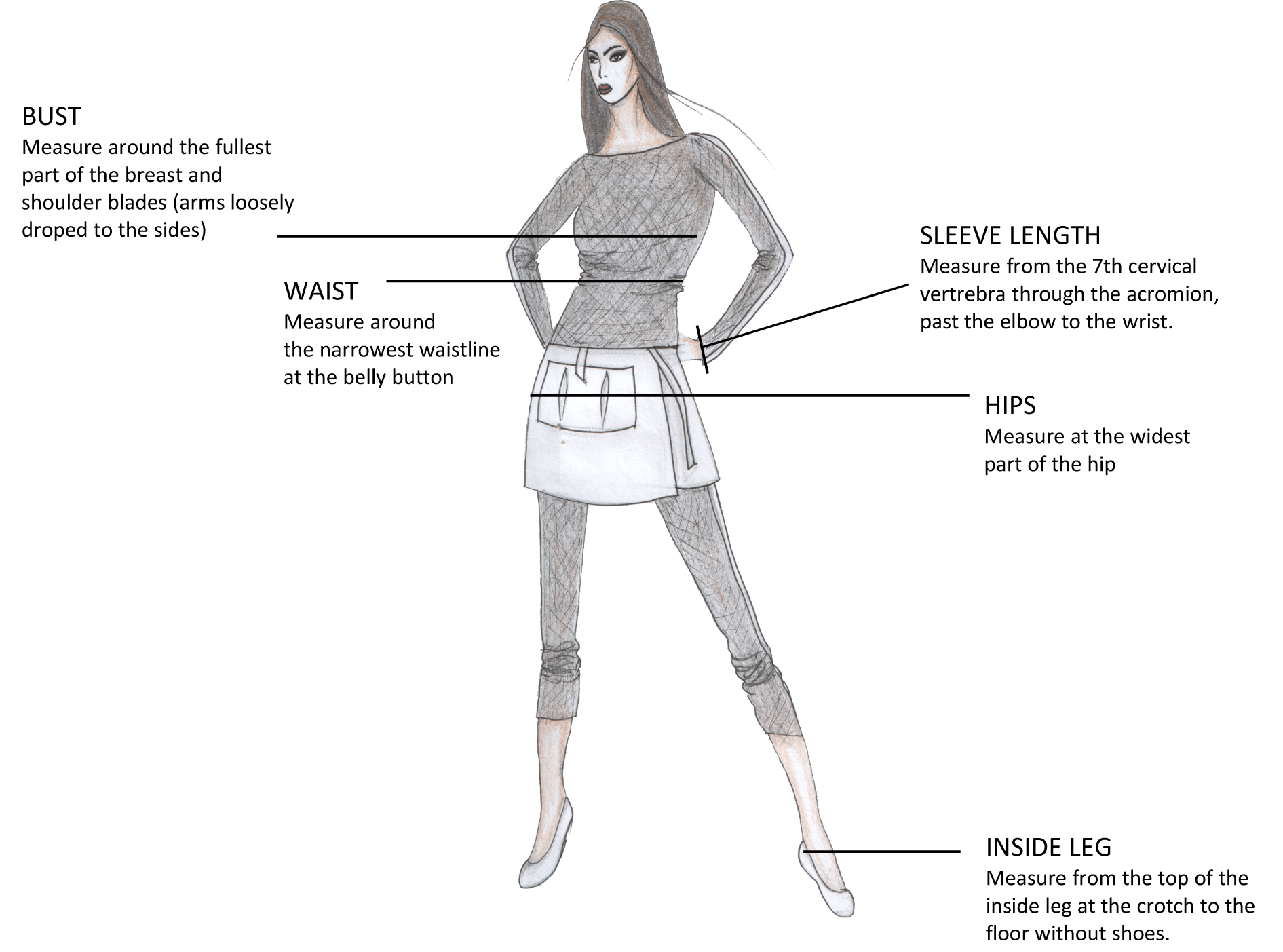 | Hips | 86 | 90 | 94 | 98 | 102 | 106 | 110 | 114 |